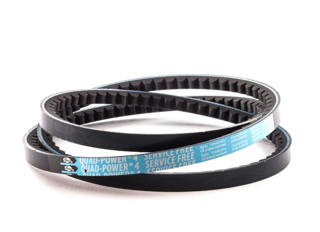 By using innovative minimal-stretch cord technology, Gates® Quad-Power® 4 bandless V-belts are free of maintenance. Unlike conventional belts, the Quad-Power® 4 V-belt does not suffer from severe tension decay in the first hours after installation.